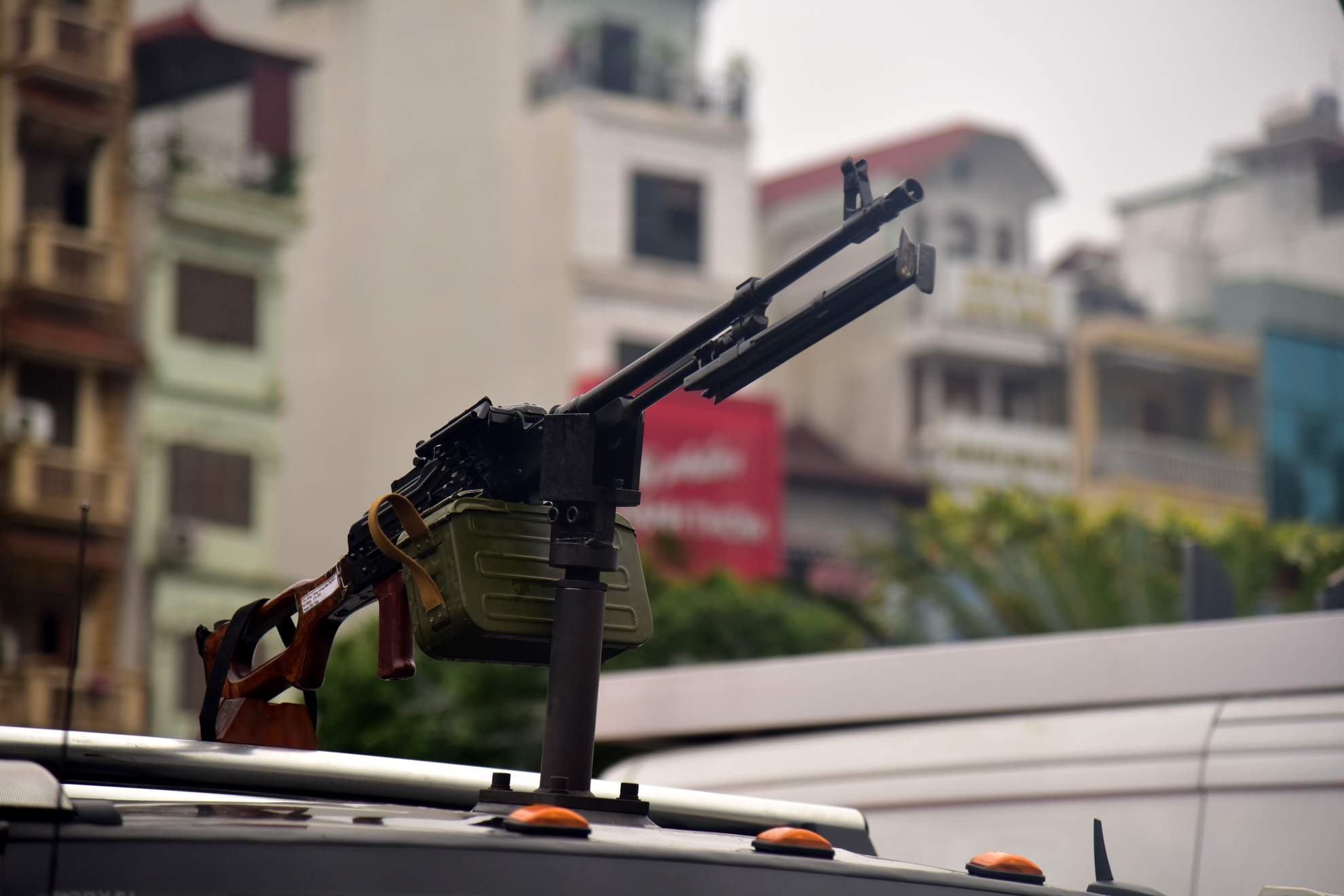 Khẩu trung liên PKM1 trên xe Hummer. Đây là loại súng máy đa chức năng do Liên xô cũ sản xuất, tốc độ bắn lên tới 850 viên/phút.