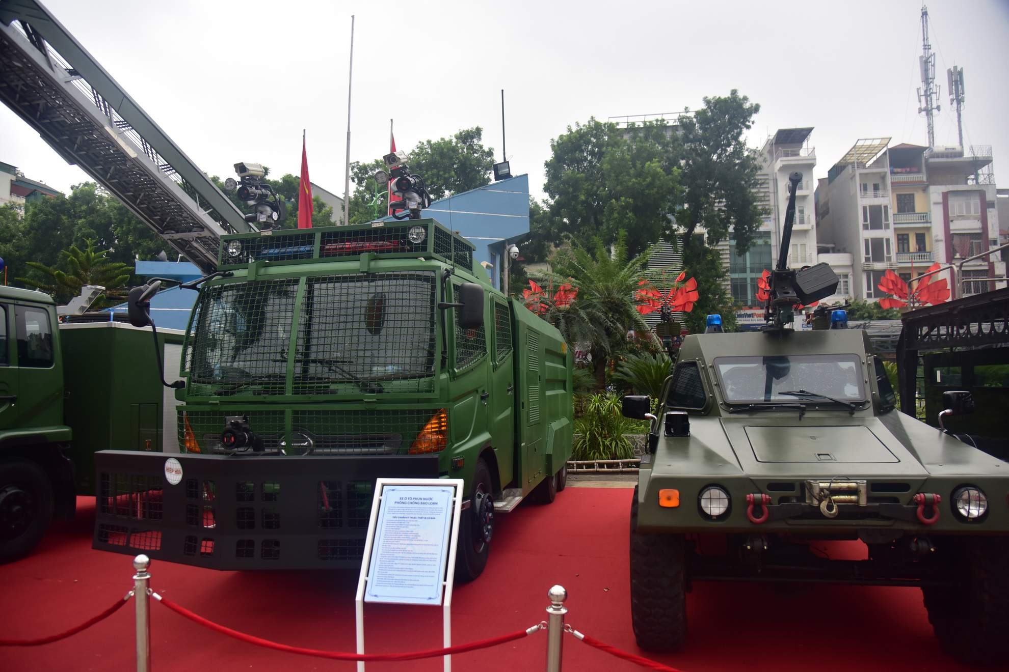 Ôtô chống đạn, xe làm nhiệm vụ hóa trang, chỉ huy chiến đấu làm nhiệm vụ chống bạo loạn, khủng bố vừa được đưa ra trưng bày tại Trung tâm triển lãm Giảng Võ (Hà Nội).