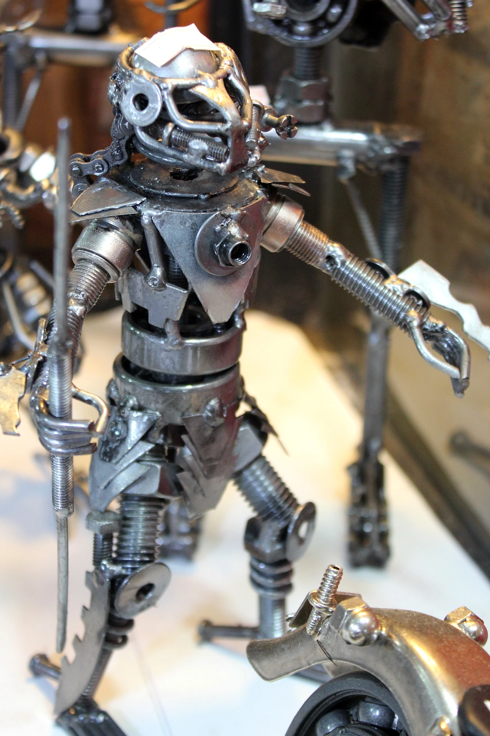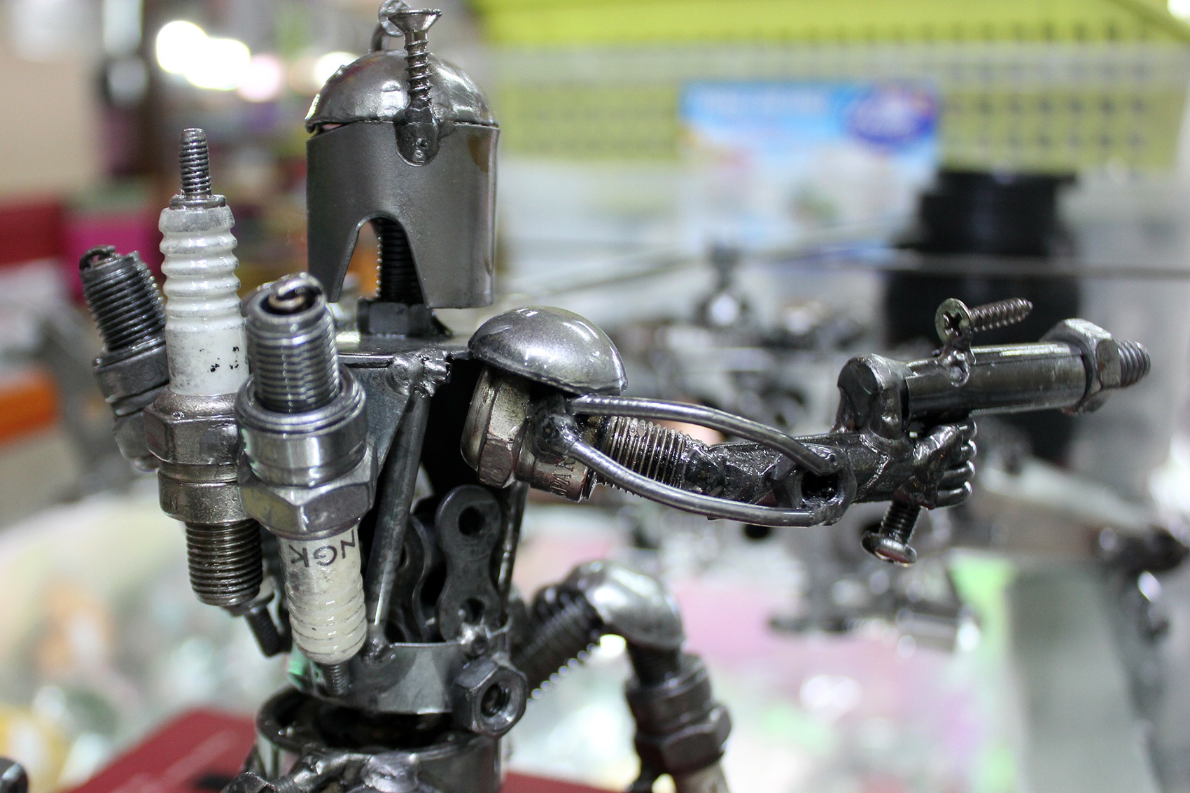 | Những chiếc bugi hỏng của xe máy được tận dụng để làm những chi tiết sống động cho rô bốt |
