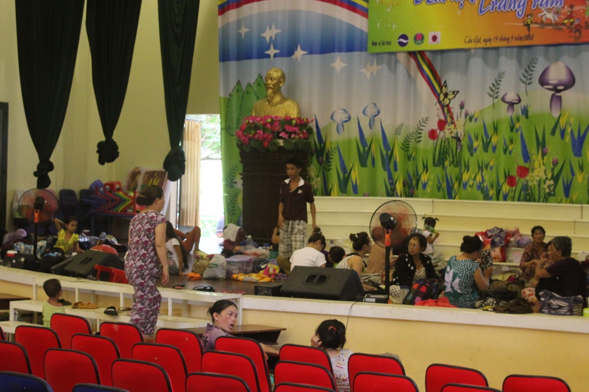 | Người già, phụ nữ và trẻ em xã đảo Thạnh An được di dời sang nhà văn hóa thiếu nhi Cần Giờ tránh bão. Đến thời điểm hiện tại Nhà văn hóa thiếu nhi tiếp nhận gần 1.000 người của xã này. |
