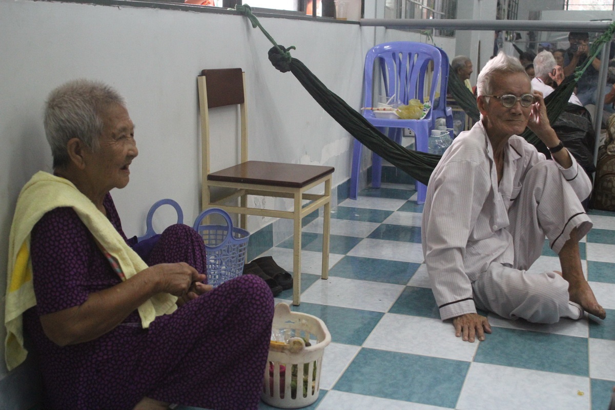 | Vợ chồng cụ Tư (86 và 83 tuổi) vào nhà thiếu nhi lúc sáng nay. |