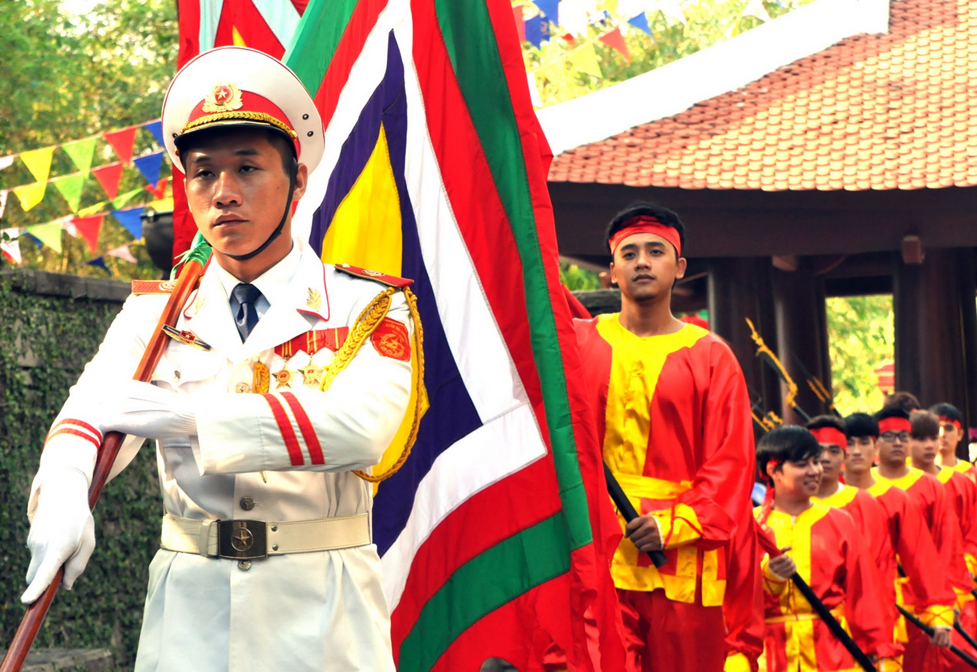 | Lãnh đạo thành phố, các đoàn cùng người dân đang tham gia lễ diễu hành đón rước lễ. Theo ban tổ chức, Lễ giổ Tổ Hùng Vương năm nay tại Công viên Lịch sử - Văn hóa dân tộc được tổ chức trang trọng, hoành tráng và có nhiều nét mới với cả phần lễ và phần hội. |