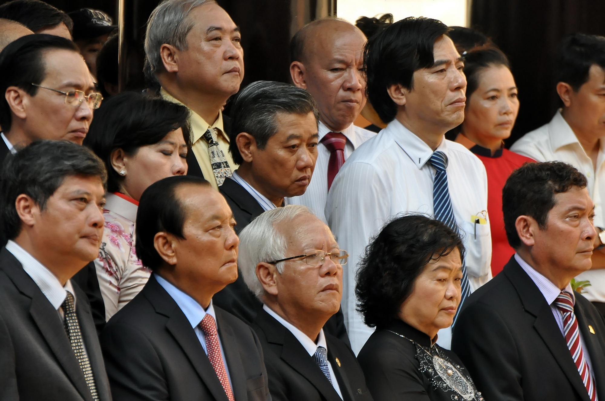 Bà Trương Mỹ Hoa, nguyên Phó Chủ tịch nước (đứng hàng đầu) cùng các lãnh đạo TP.HCM tham dự buổi lễ.
