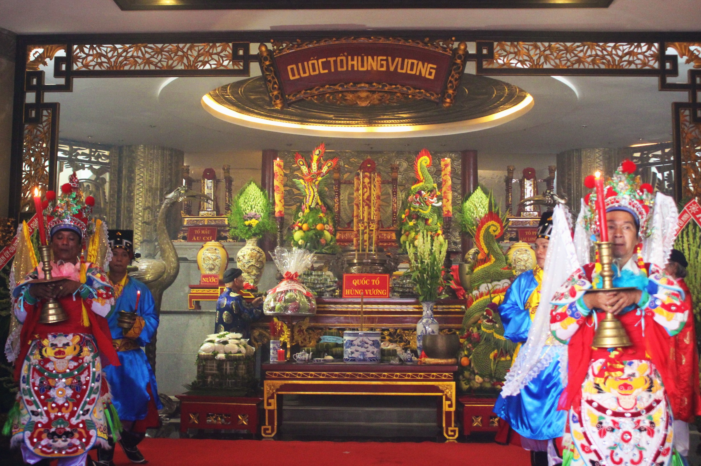 | Sau khi rước đồ lễ lên bàn thờ Quốc Tổ Hùng Vương, ban tổ chức tiến hành Lễ Tế theo nghi thức cổ truyền của các Ban quý tế đình đền trên địa bàn thành phố. |