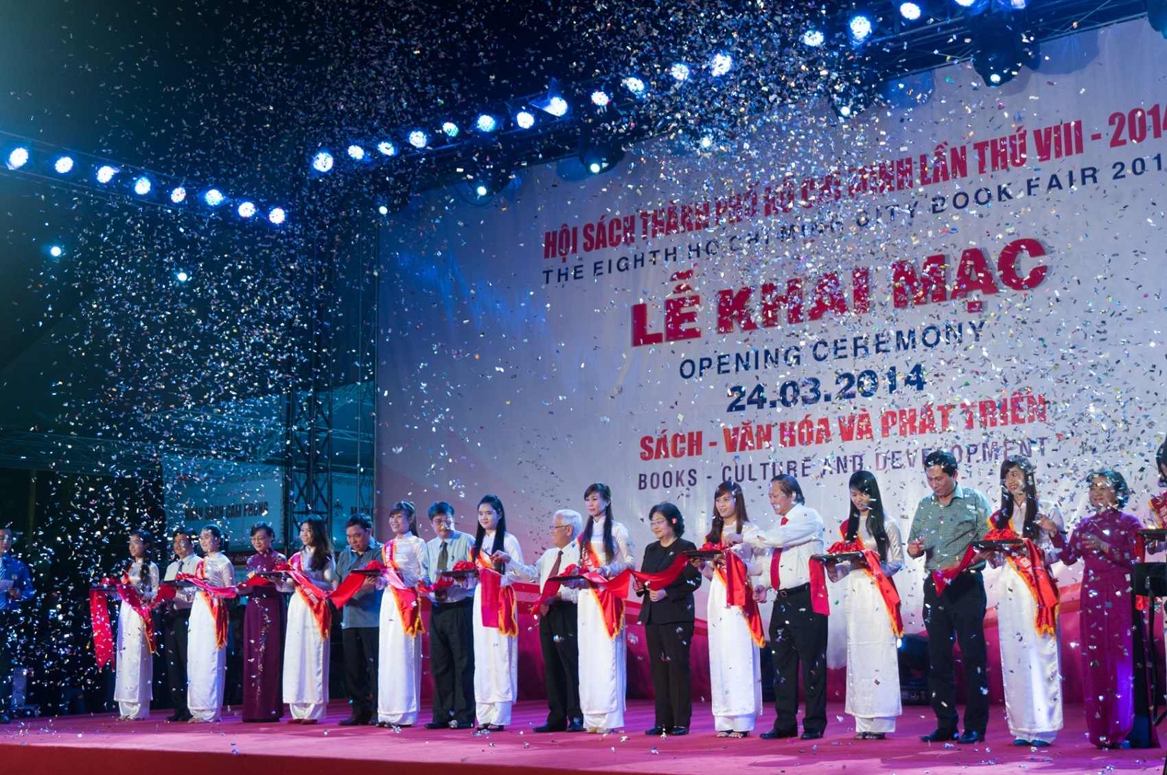 | Các đại biểu cắt băng mở màn hội sách TP.HCM lần 8. Sự kiện này sẽ bắt đầu từ hôm nay đến hết ngày 30/3. |