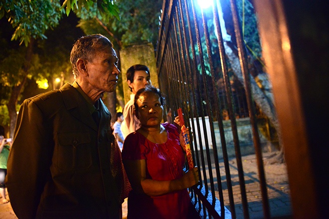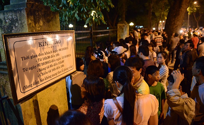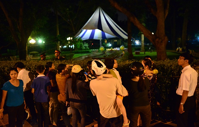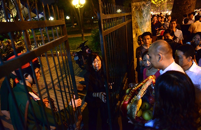 Mặc dù có thông báo đón khách viếng tang Đại tướng vào 8h sáng hôm sau, tuy nhiên, đêm 6/10, vẫn có đông đảo người dân đến trước cổng nhà Tướng Giáp lặng mình kính viếng.