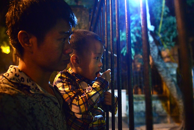 | Nhiều trẻ nhỏ được bố mẹ đưa theo đến trước cổng để tưởng nhớ Bác. |