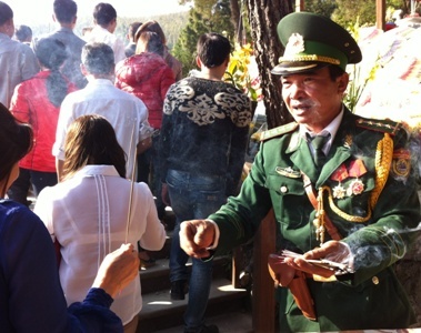 Anh Nguyễn Anh Tuấn, giáo viên Trường THCS Kỳ Hải cho biết, dù đã vào viếng mộ Đại tướng nhiều lần nhưng để giáo dục các con, ngày mồng Hai Tết, cả gia đình quyết định chạy xe máy 40km từ thị trấn Kỳ Anh (Hà Tĩnh) vào để thắp hương tưởng nhớ vị Đại tướng vĩ đại. |