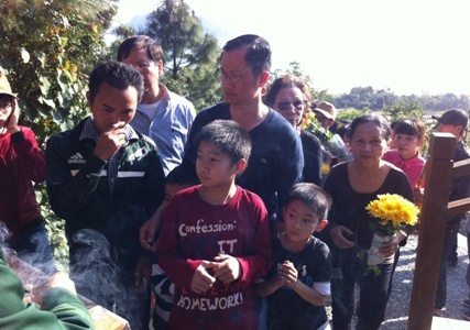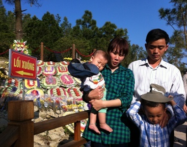 | Một gia đình trẻ vừa vào viếng mộ Đại tướng. |