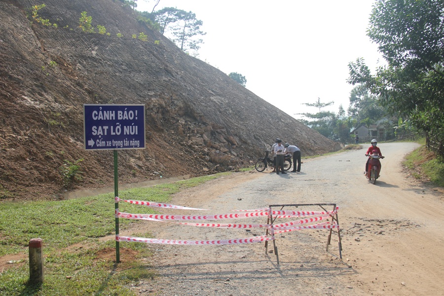 | Ngay sau khi phát hiện vết nứt, cùng với việc vận động số hộ dân nằm trong khu vực nguy hiểm đến nơi khác ở tạm chính quyền Sơn Hà đã cắm biển để cảnh báo cho người và phương tiện qua lại và lập phương án để xử lý vết nứt. |