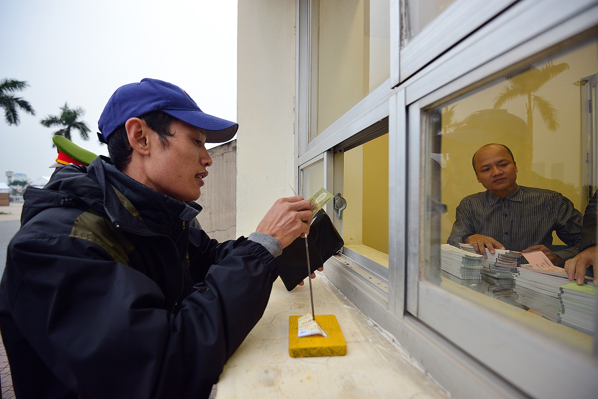 | Anh Cao Xuân Thu may mắn là người đầu tiên được vào bên trong mua vé. "Tôi mua 4 vé khán đài D để đưa cả gia đình đến xem, cổ vũ cho tuyển Việt Nam", anh nói. |