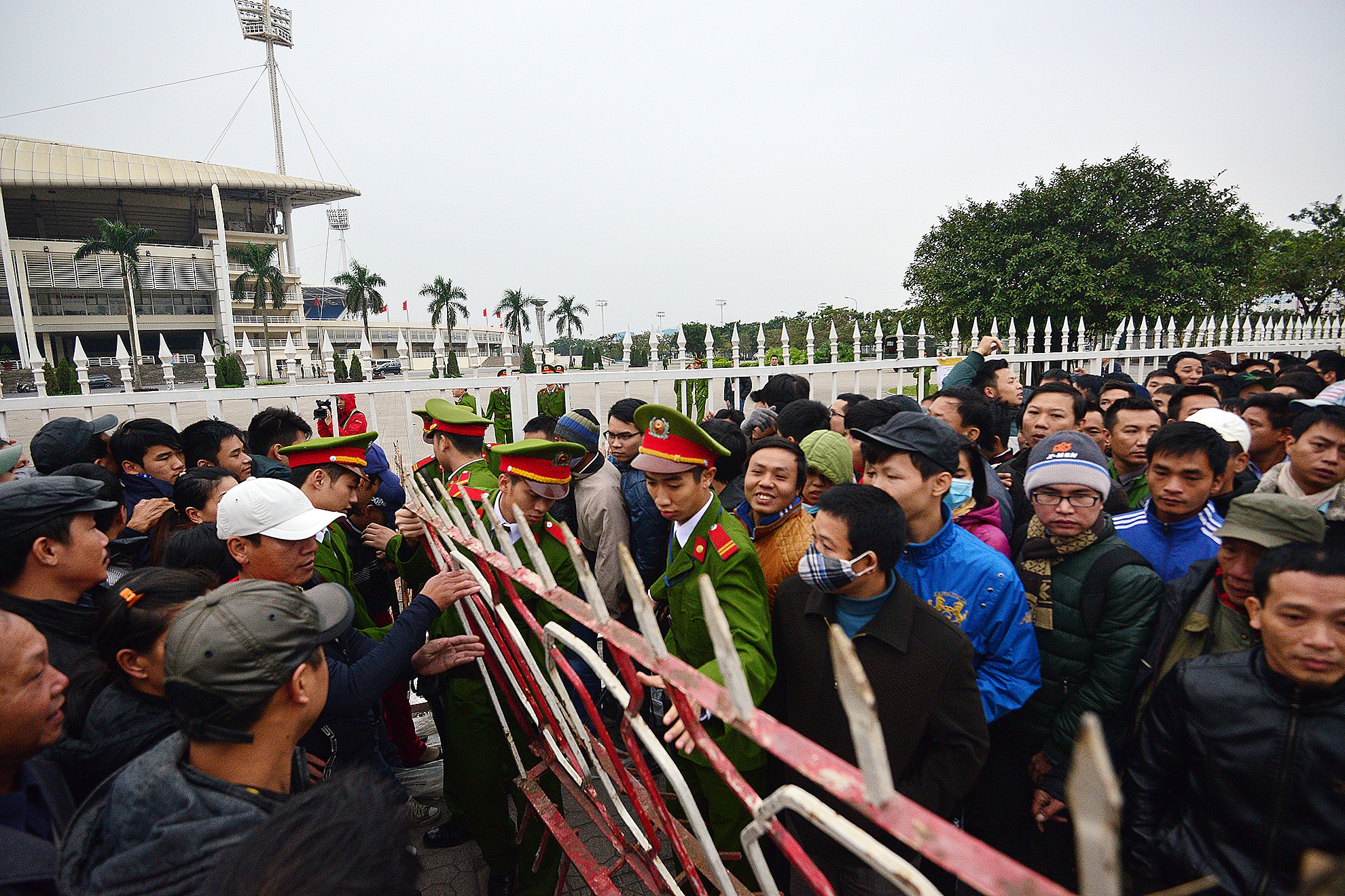 Sáng sớm nay, hàng nghìn người hâm mộ có mặt trước cổng sân SVĐ Mỹ Đình để xếp hàng mua vé xem trận bán kết lượt về giữa Việt Nam và Malaysia dẫn đến tình trạng chen lấn, xô đẩy.