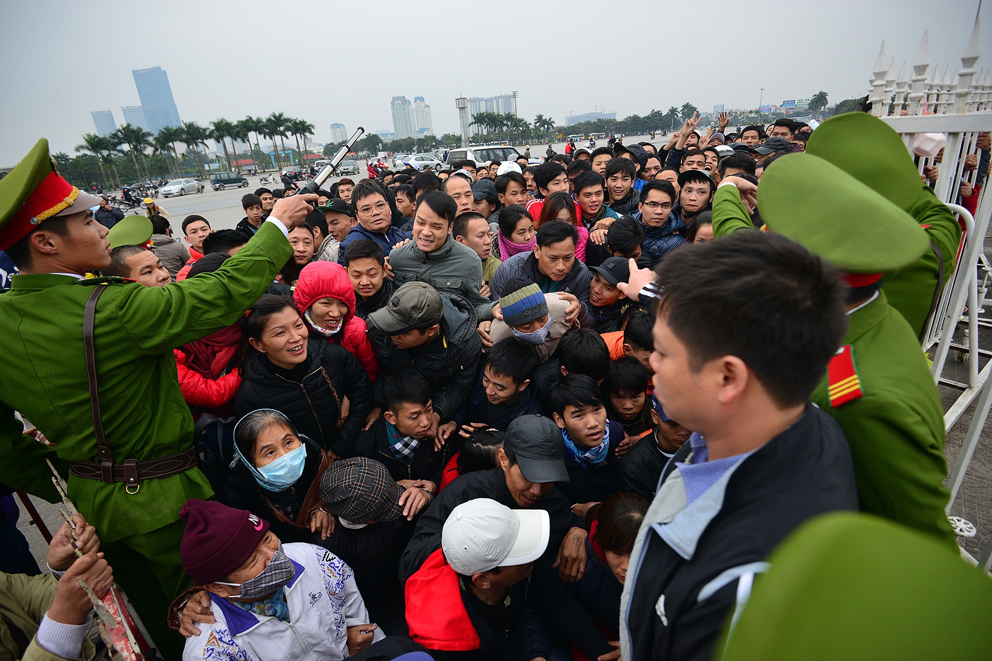 Tuy nhiên tình trạng chen lấn, xô đẩy thường xuyên xảy ra. Có những thời điểm lực lượng này phải dùng dùi cui điện.