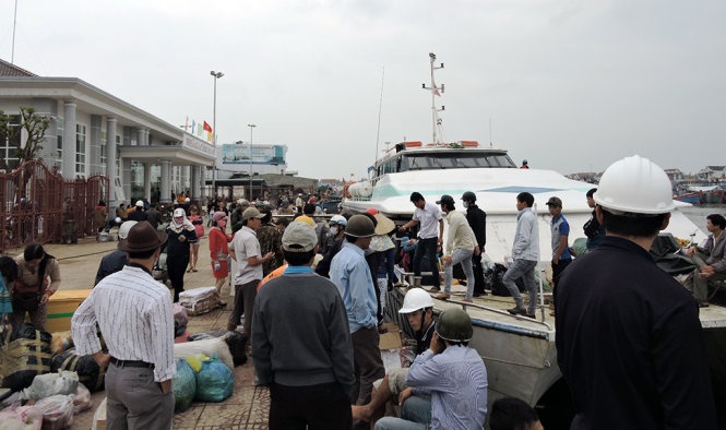 Hành khách chờ trực để được về đảo ăn tết cùng gia đình . |
