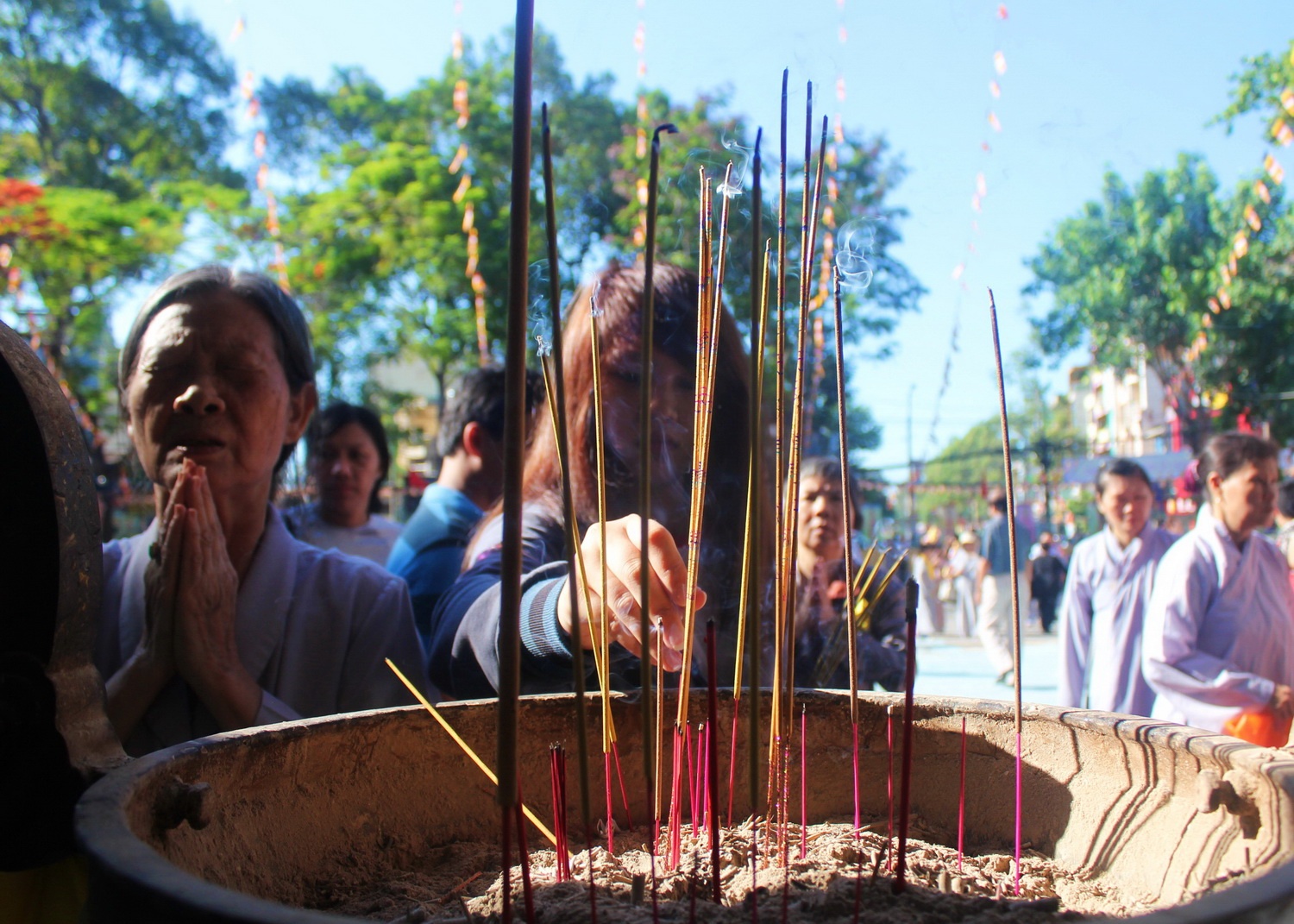 | Sau buổi lễ, nhiều Phật tử và người dân TP thắp hương, cầu an. |