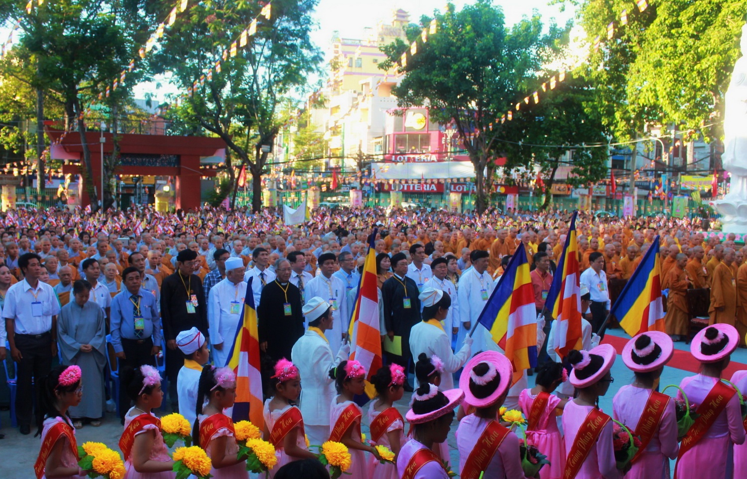 | Từ sáng sớm, hàng ngàn chư tôn giáo phẩm Tăng ni, Phật tử từ các quận huyện, tự viện, tổ đình, tịnh thất, niệm Phật đường, đạo tràng trong TP.HCM đã về Việt Nam Quốc Tự để tham dự Đại lễ Phật đản PL 2558. |