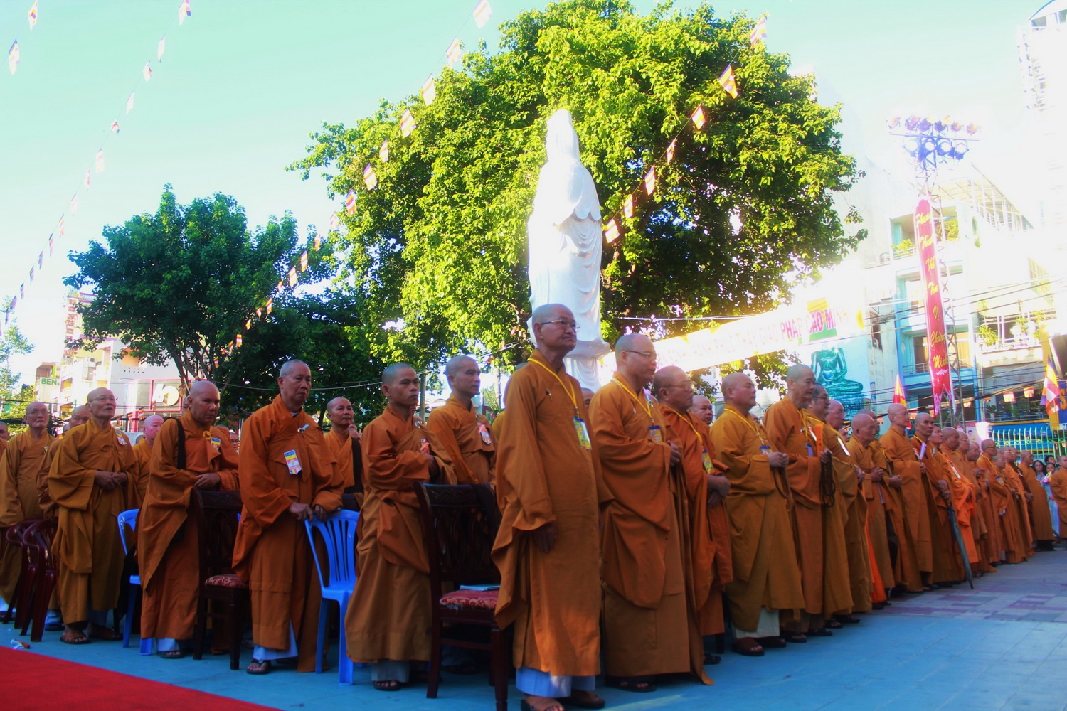 | Chư tôn đức giáo phẩm Tăng ni, khách quý và Phật tử trang nghiêm nghe Hòa thượng Thích Đức Nghiệp, Phó Pháp chủ Hội đồng Chứng minh GHPGVN, tuyên đọc Thông điệp Đại lễ Phật đản PL 2558 - Vesak LHQ 2014 gởi chư tôn đức Tăng ni, Phật tử trong và ngoài nước. |