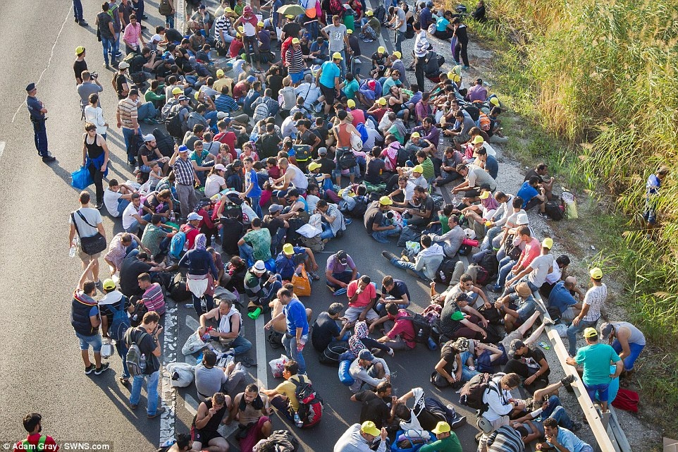 Người nhập cư ngồi nghỉ ngay trên đường. Ảnh: SWNS |