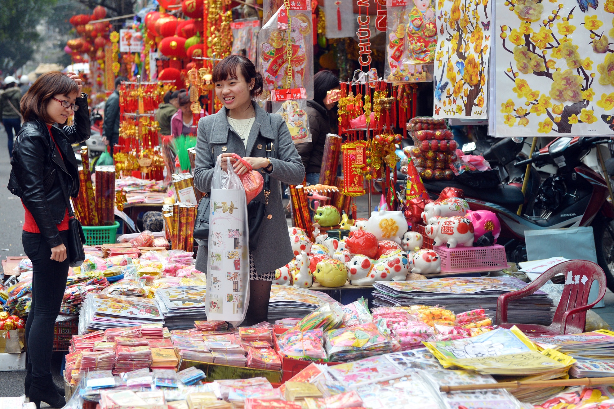 | Rất đông người nước ngoài chọn Việt Nam làm địa điểm du lịch dịp này. Họ đã tranh thủ đi ngắm phố, chọn mua đồ độc đáo mà chỉ Tết mới có bán như những bao lì xì, quà tặng, đồ trang trí... |