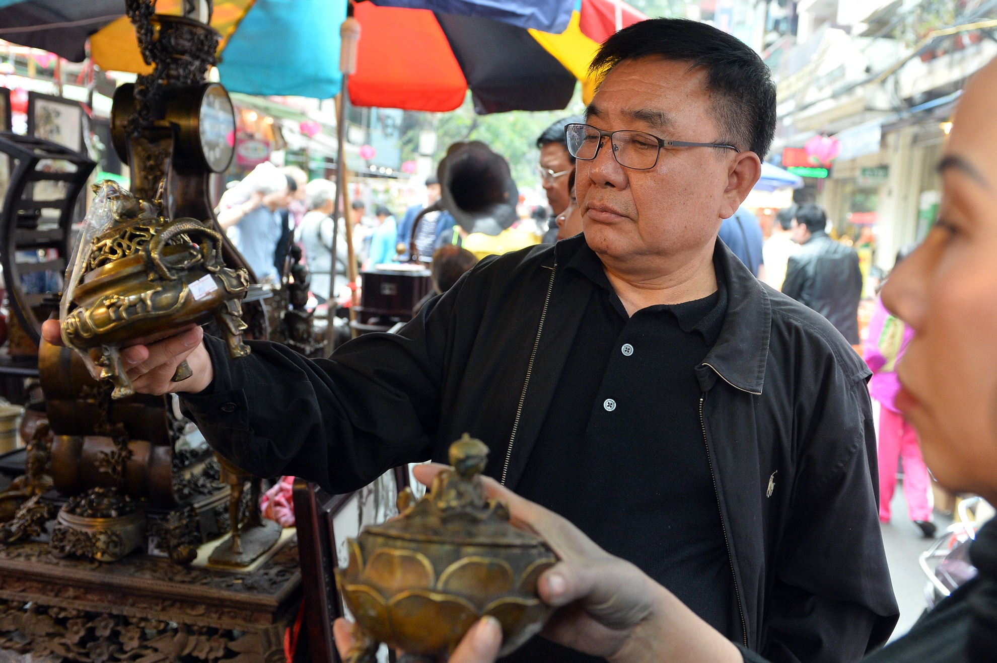 | Chiếc lư đốt trầm giá 1,2 triệu đồng đang được một vị khách đắn đo chọn lựa. |