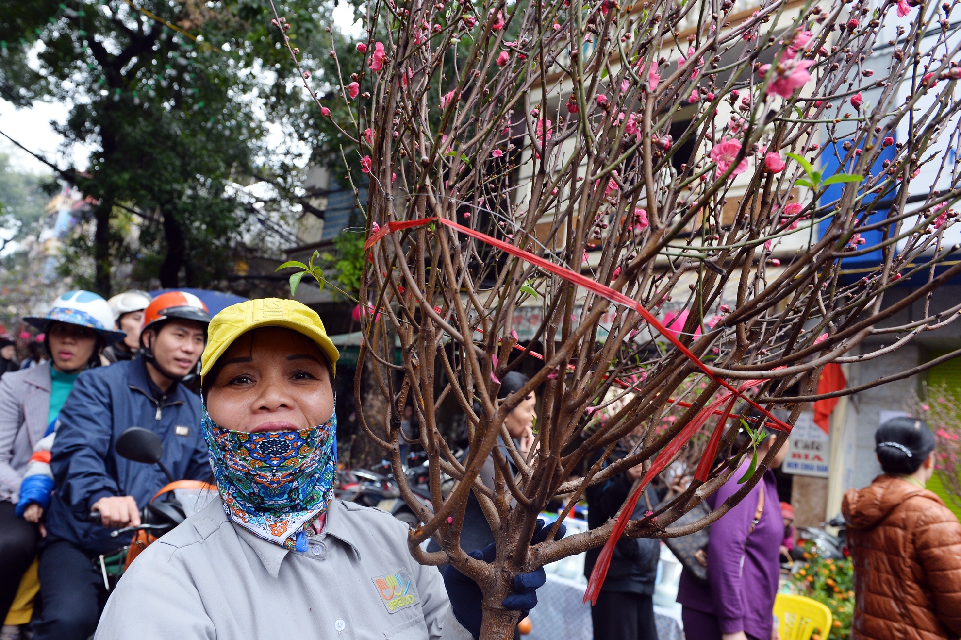 Những ngày này, chợ hoa nổi tiếng đất Hà thành càng đông khách thì giá cả càng không hề rẻ. Một cành đào trên tay bà Chi (ảnh) được người bán hét giá 300.000 đồng, không bớt, mặc dù hầu hết hoa tại đây bông đã không còn tươi và nở tung tóe. Chồng bà cho biết, nhà từ phố Tây Sơn, đi mấy chợ từ sáng mà vẫn chưa được cành nào đẹp.