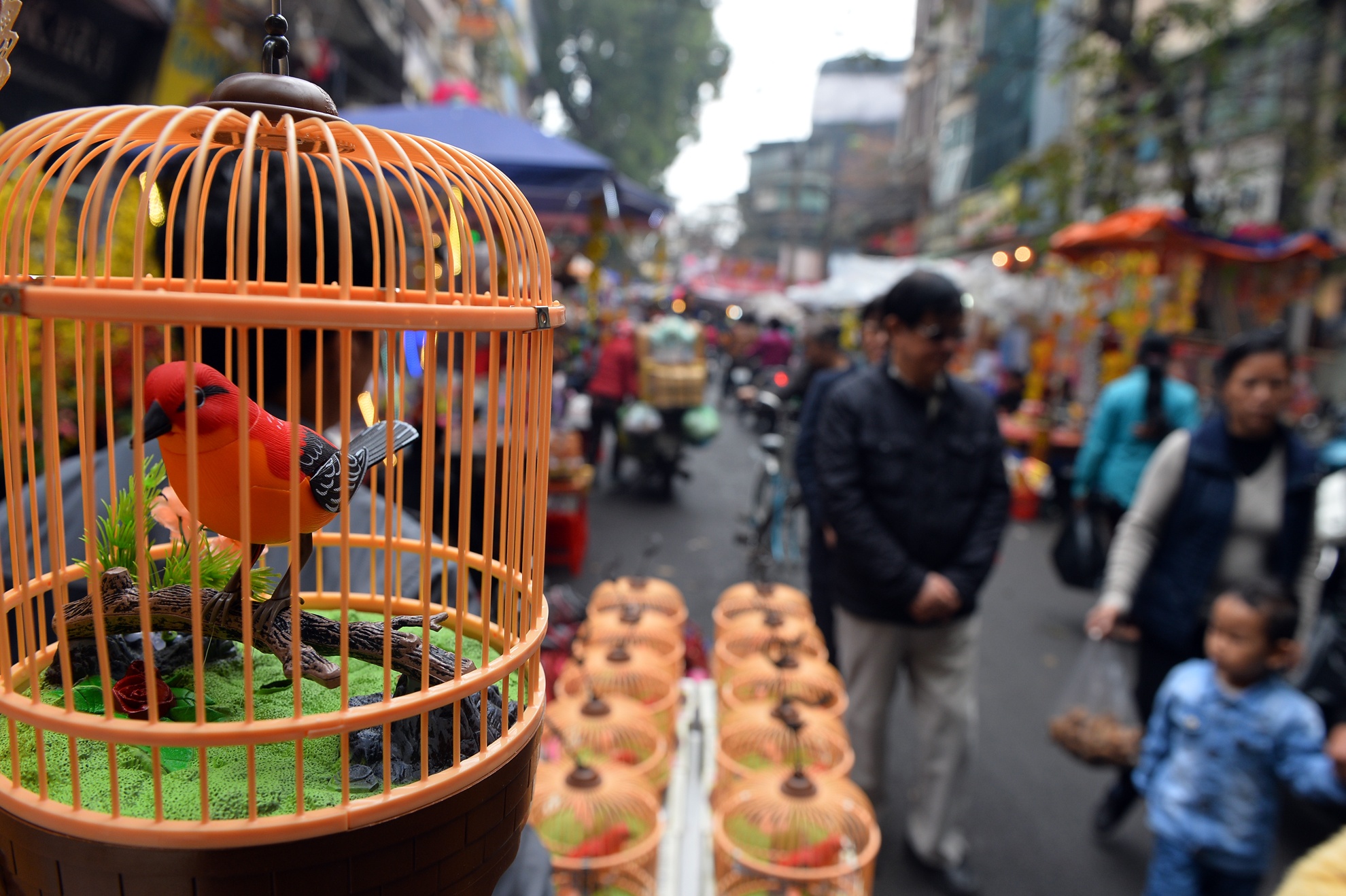 Trên các tuyến phố Hàng Lược, Hàng Mã, Lương Văn Can, không chỉ hoa mà còn có rất nhiều đồ trang trí khác phục vụ nhu cầu sắm Tết của người dân.