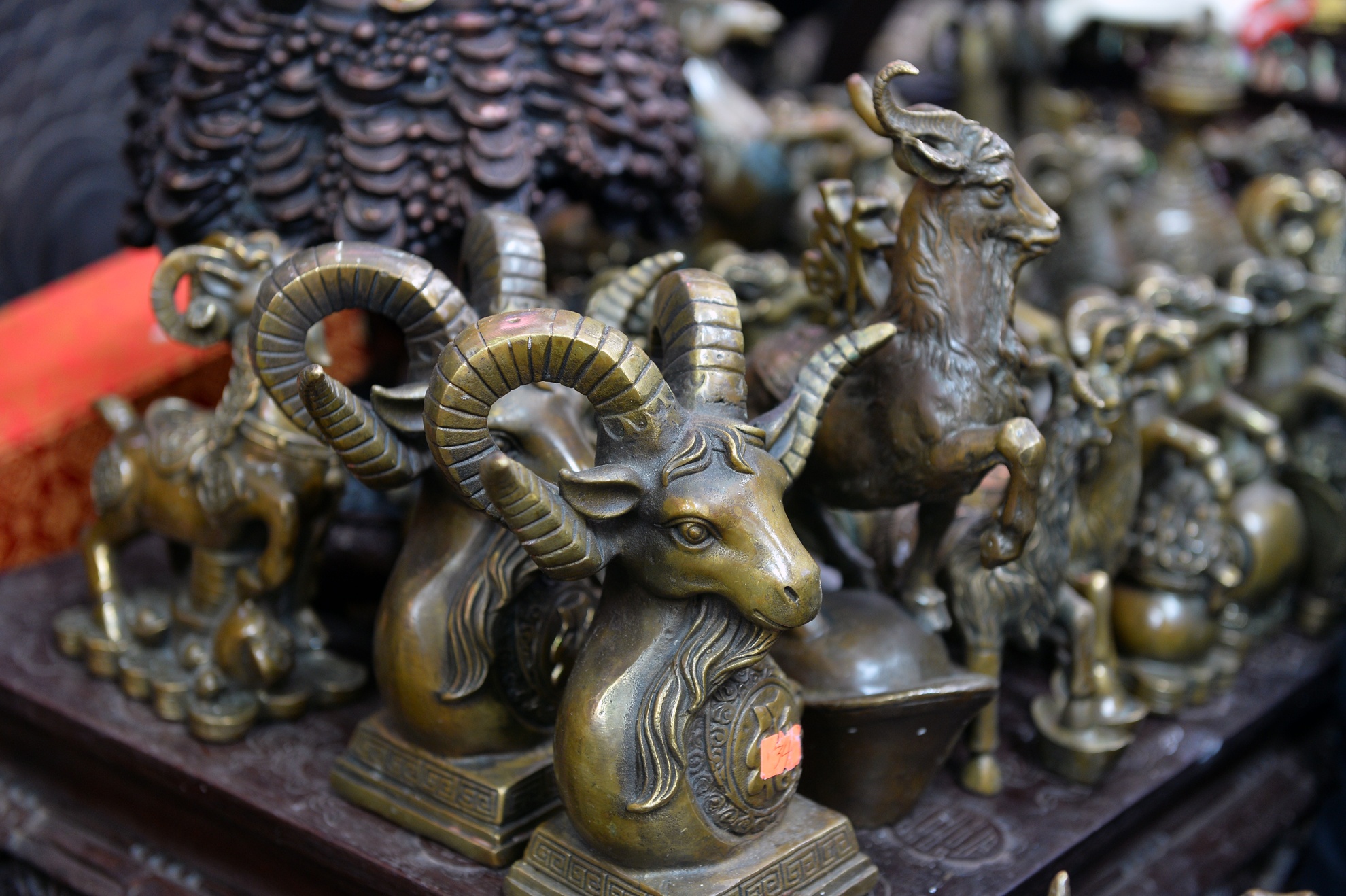 | Những con dê làm bằng đồng được chào bán giá 1 triệu đồng/con. |
