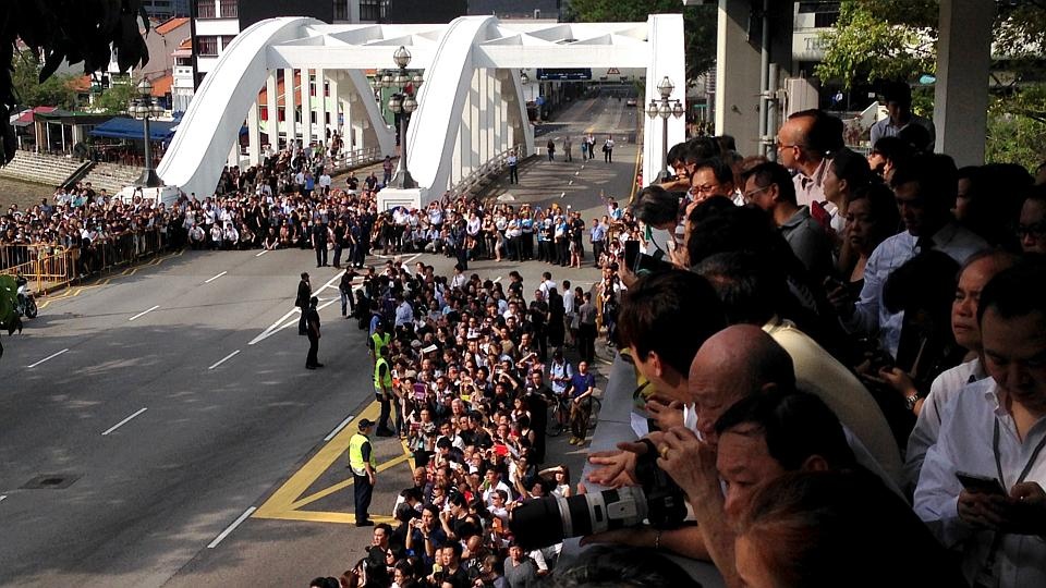 Theo BBC, hàng nghìn người xếp hàng dài khắp các con đường tại Singapore để đón linh cữu cố thủ tướng Lý Quang Diệu từ Phủ tổng thống Istana tới tòa nhà Nhà Quốc hội sáng nay. |