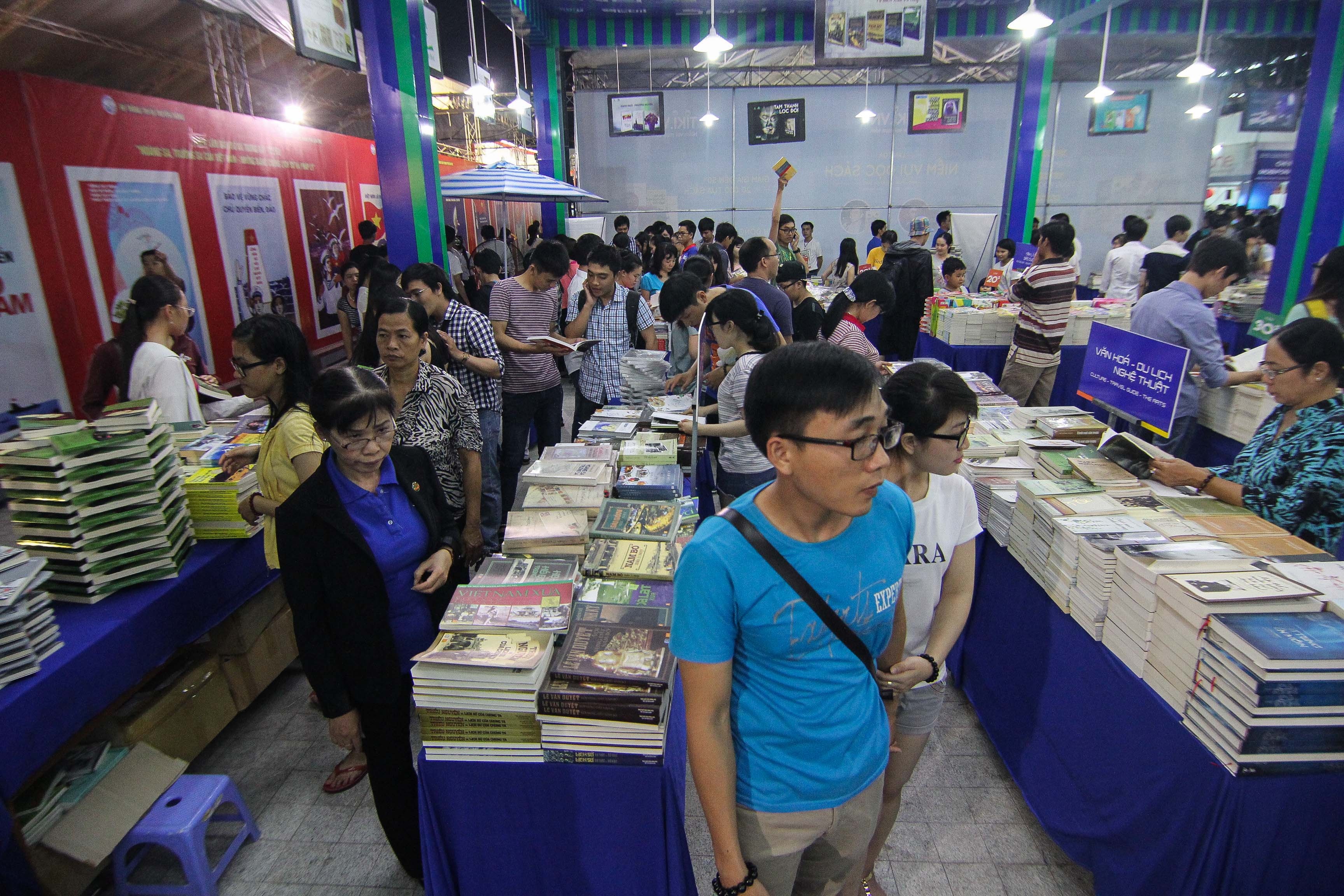 | Đông đảo người dân đến tham quan, mua sắm. Hội sách có 54 đơn vị với hơn 200 gian hàng tham gia giới thiệu, bán sách, văn hóa phẩm. |