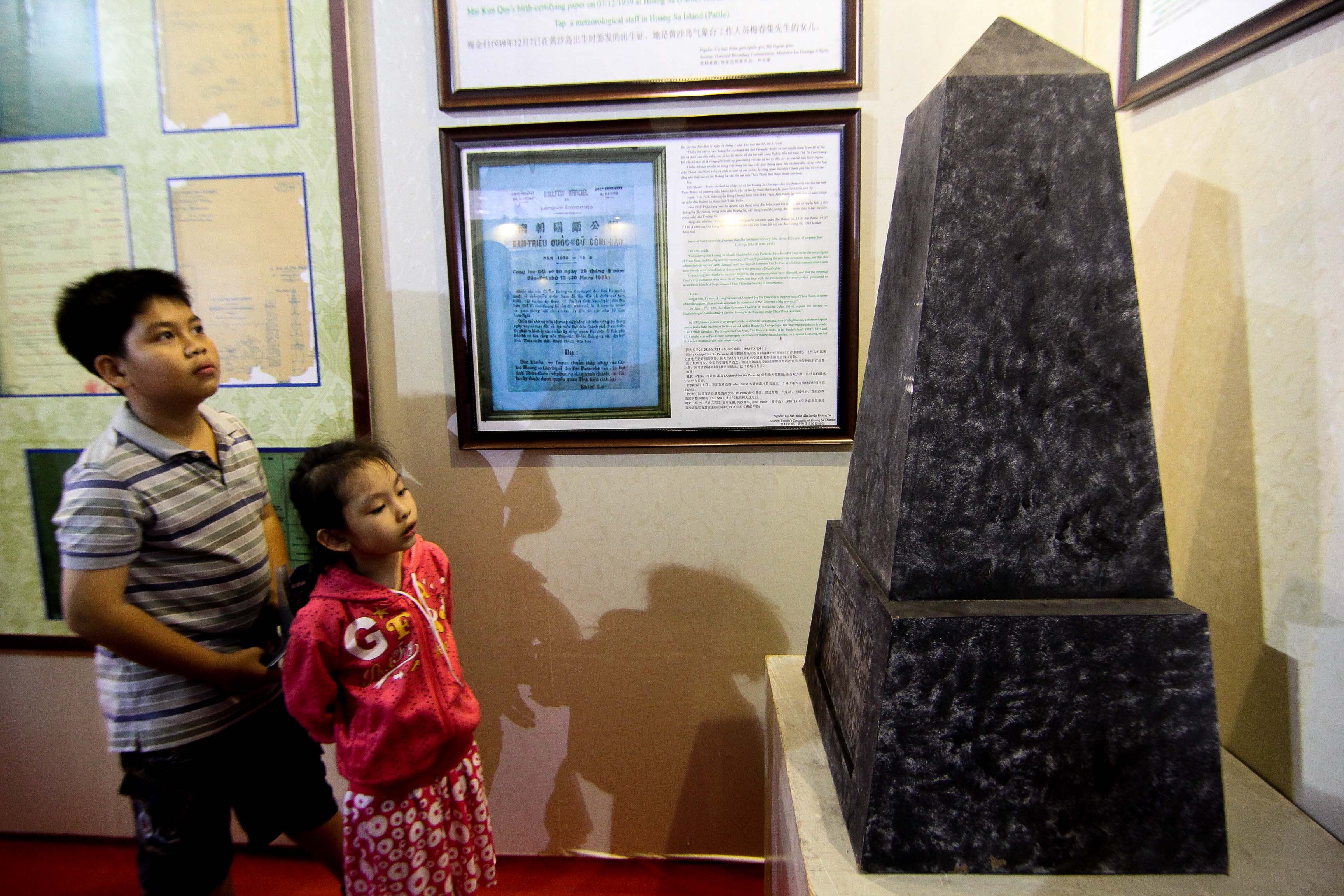 | Hoạt động triển lãm về Hoàng Sa, Trường Sa là điểm nhấn tại hội sách. Nhiều tư liệu quý về chủ quyền của Việt Nam trên hai quần đảo được trưng bày. Trong hình là tấm bia chủ quyền dựng trên quần đảo Hoàng Sa tháng 6/1938. |