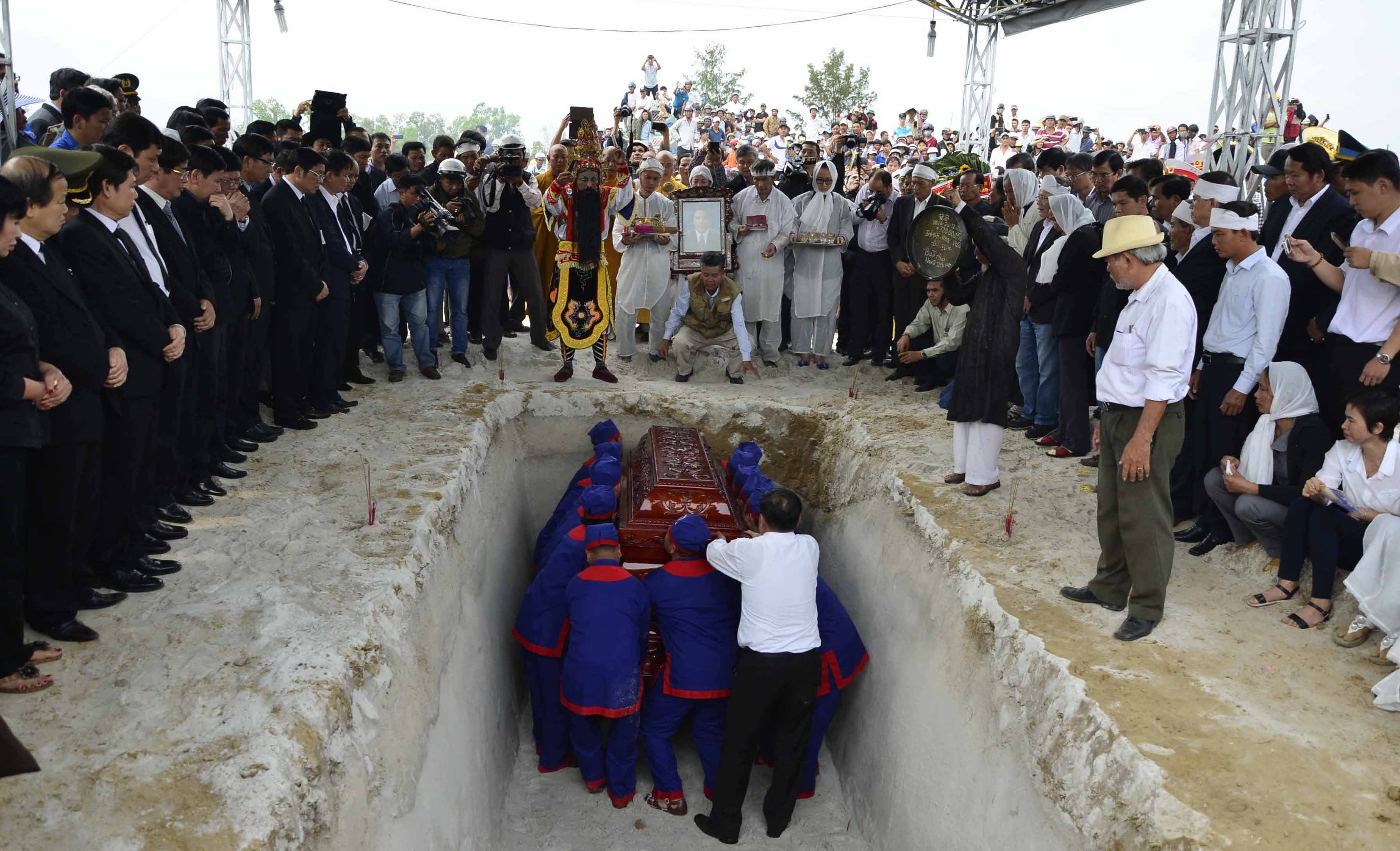 | Hơn 12h ngày 18/2, linh cữu của ông Thanh được đưa về nơi an nghỉ cuối cùng. Hàng nghìn người dân đã có mặt tại huyệt mộ để tiễn biệt ông lần cuối. |