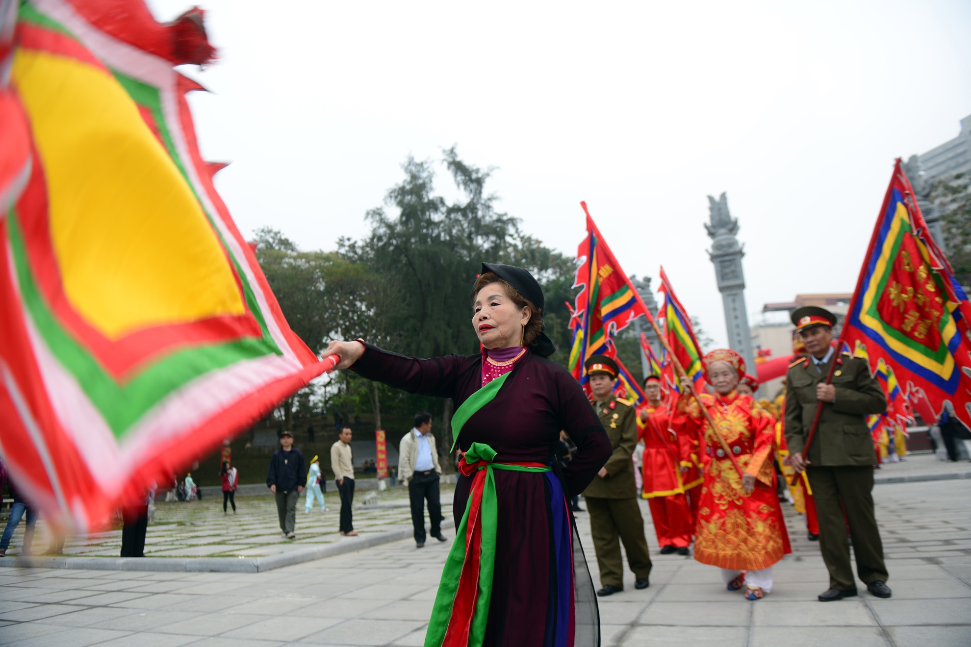 | Lễ hội bắt đầu vào 8h sáng, mở màn bằng màn rước kiệu cờ hoa và tế của các đoàn đến từ nhiều tỉnh, thành. |