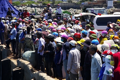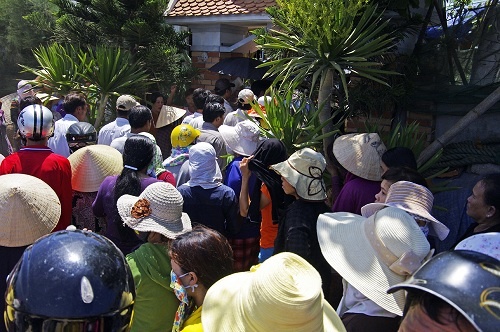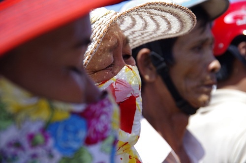 | Bà con ngư dân huyện đảo Lý Sơn không ngại cái nắng biển cháy da cháy thịt, đến chia buồn và tiễn đưa ông Giùm. |