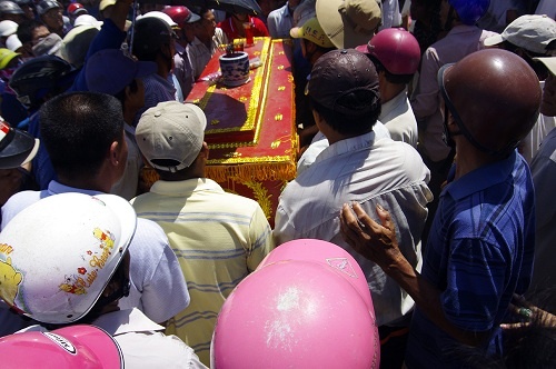 | Các ngư dân đưa linh cữu vị thuyền trưởng dũng cảm vào nhà. |