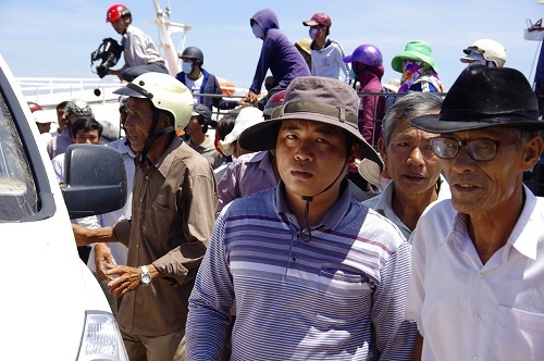 | Sáng sớm 27/5 , người thân, bà con, chính quyền huyện đảo Lý Sơn và xã An Vĩnh đã tập trung rất đông tại cầu cảng Lý Sơn đón linh cữu ngư dân Đặng Giùm tử vong do bị tàu "lạ" đâm chìm từ hai hôm trước trên vùng biển vịnh Bắc Bộ. |