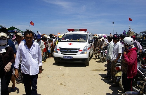 | Linh cữu vị thuyền trưởng xấu số được chở từ phía Bắc bằng đường bộ về cảng Sa Kỳ. |