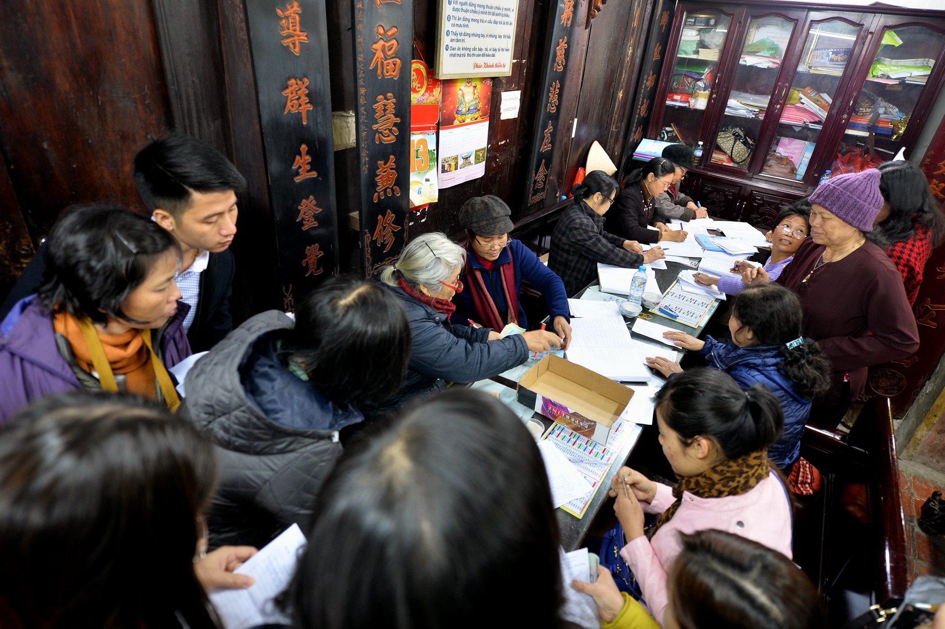 Nhiều khách đến sớm đăng ký để nhà chùa viết sớ dâng lên ban thờ, chờ nhà sư trụ trì làm lễ vào 19h tối cùng ngày.