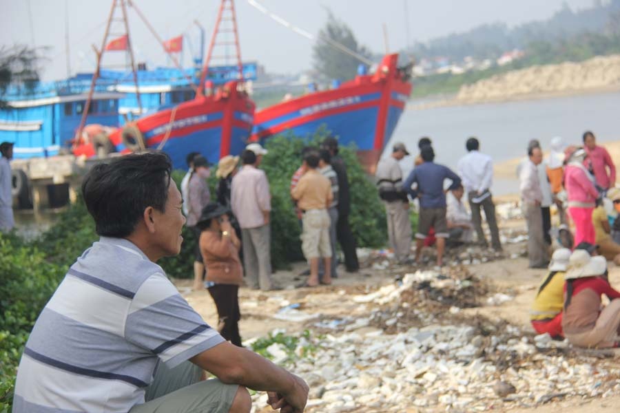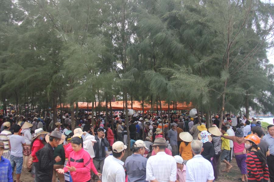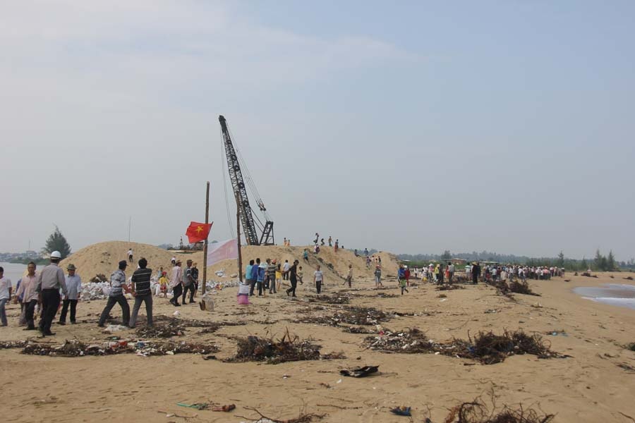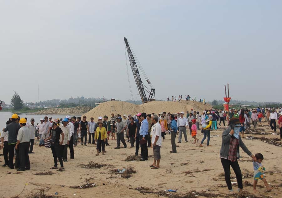 | Người dân xã Nghĩa An (huyện Tư Nghĩa, Quảng Ngãi) tập trung ở cửa Đại để phản đối doanh nghiệp khai thác cát gây sạt lở và bày tỏ bức xúc với lãnh đạo tỉnh. |