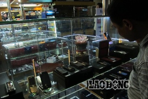 Điều ngạc nhiên là tại cửa hàng tầng 1 của Xí nghiệp dịch vụ tổng hợp hàng không Nội Bài (Cảng hàng không Nội Bài) đang bày bán rất nhiều điện thoại nhái mác các thương hiệu nổi tiếng thế giới với giá “bèo” như: Vertu Signature 25.500.000đ/chiếc, trong khi giá thực tế của chiếc điện thoại này khoảng 400 triệu đồng); Mobiado 8 triệu...