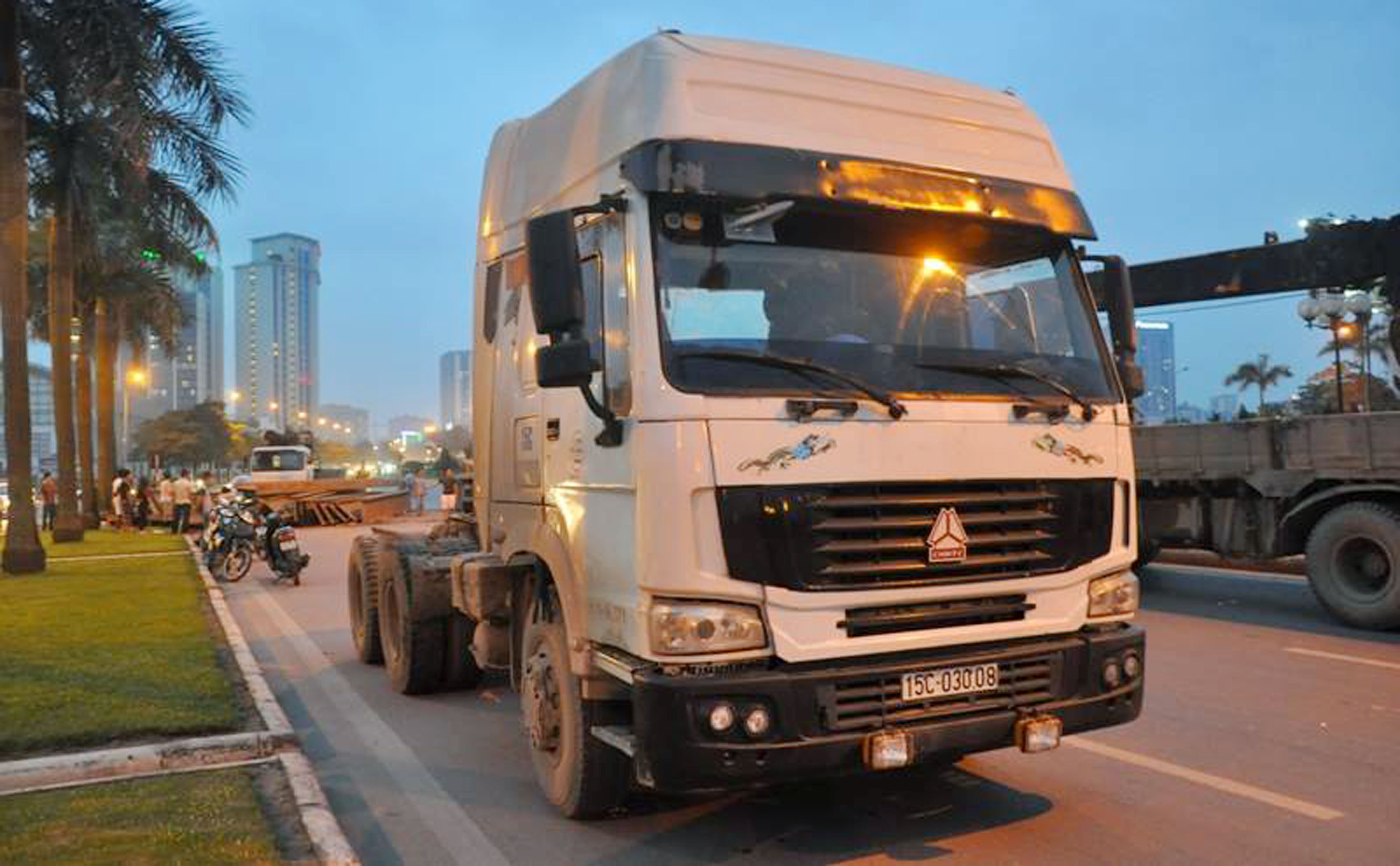 | 17h ngày 20/4, do xe container cua gấp từ đường thôn Phú Mỹ ra Lê Đức Thọ (Hà Nội) nên toàn bộ thép cỡ lớn trên xe rơi xuống lòng đường. |