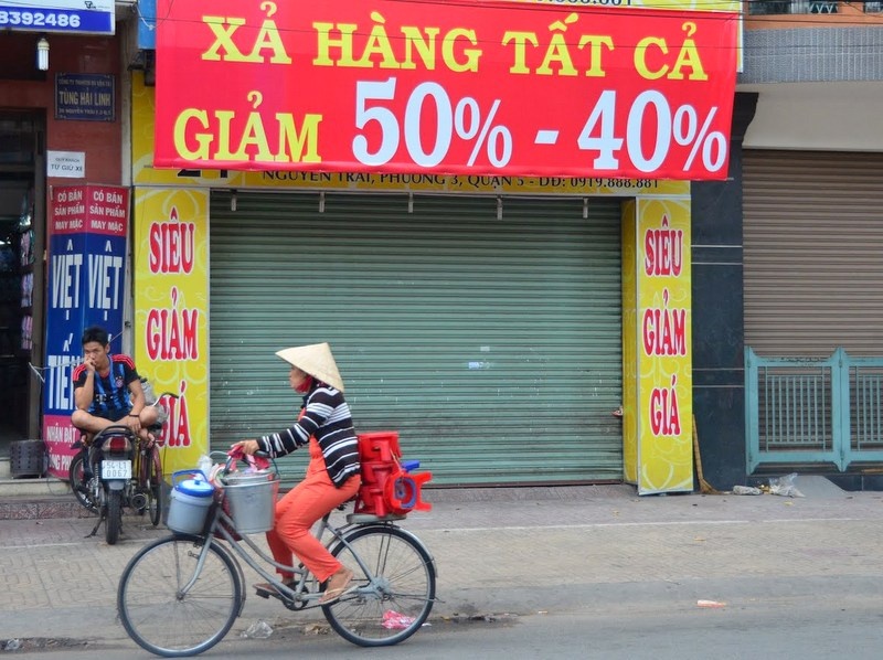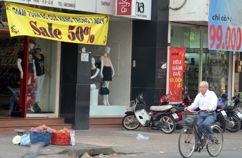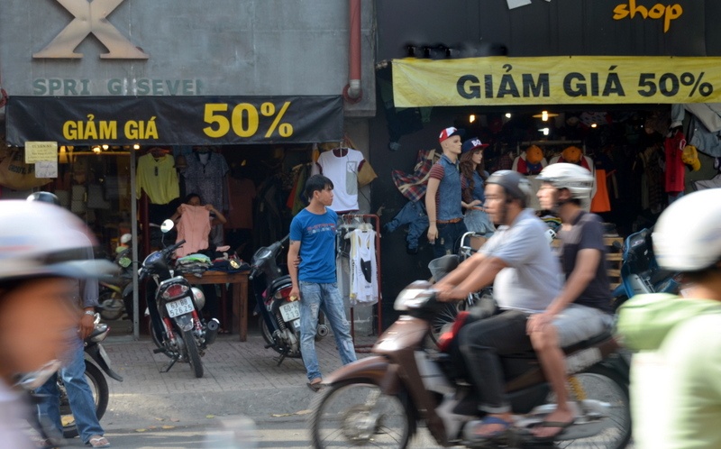 Dọc các đường Nguyễn Trãi, Lê Văn Sỹ đến các khu mua sắm lớn, hàng thời trang ồ ạt giảm giá đến 50%. Tuy nhiên, lượng khách hỏi mua ít, nhiều cửa hàng đóng cửa.