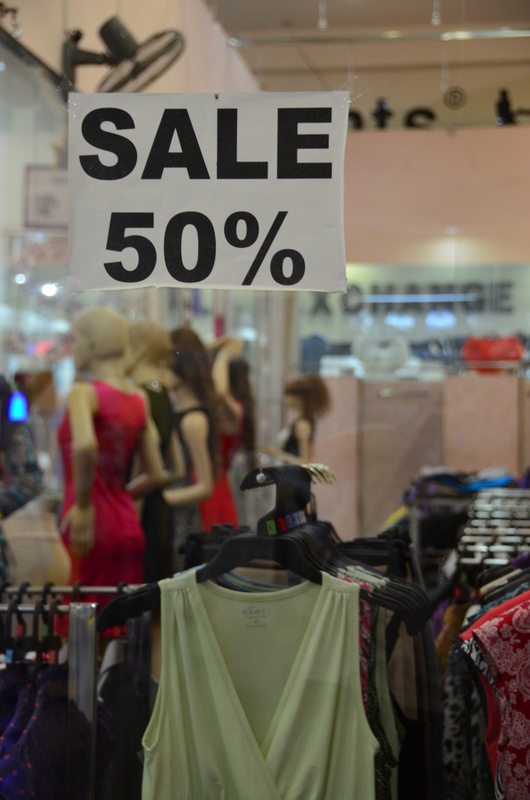 | Mức giảm giá biến đổi theo tùy cửa hàng, thường ở mức từ 20-50%, cá biệt có cửa hàng đưa ra những chương trình giảm giá đến 70%. Tuy nhiên, lượng khách ghé thăm vẫn hạn chế. |