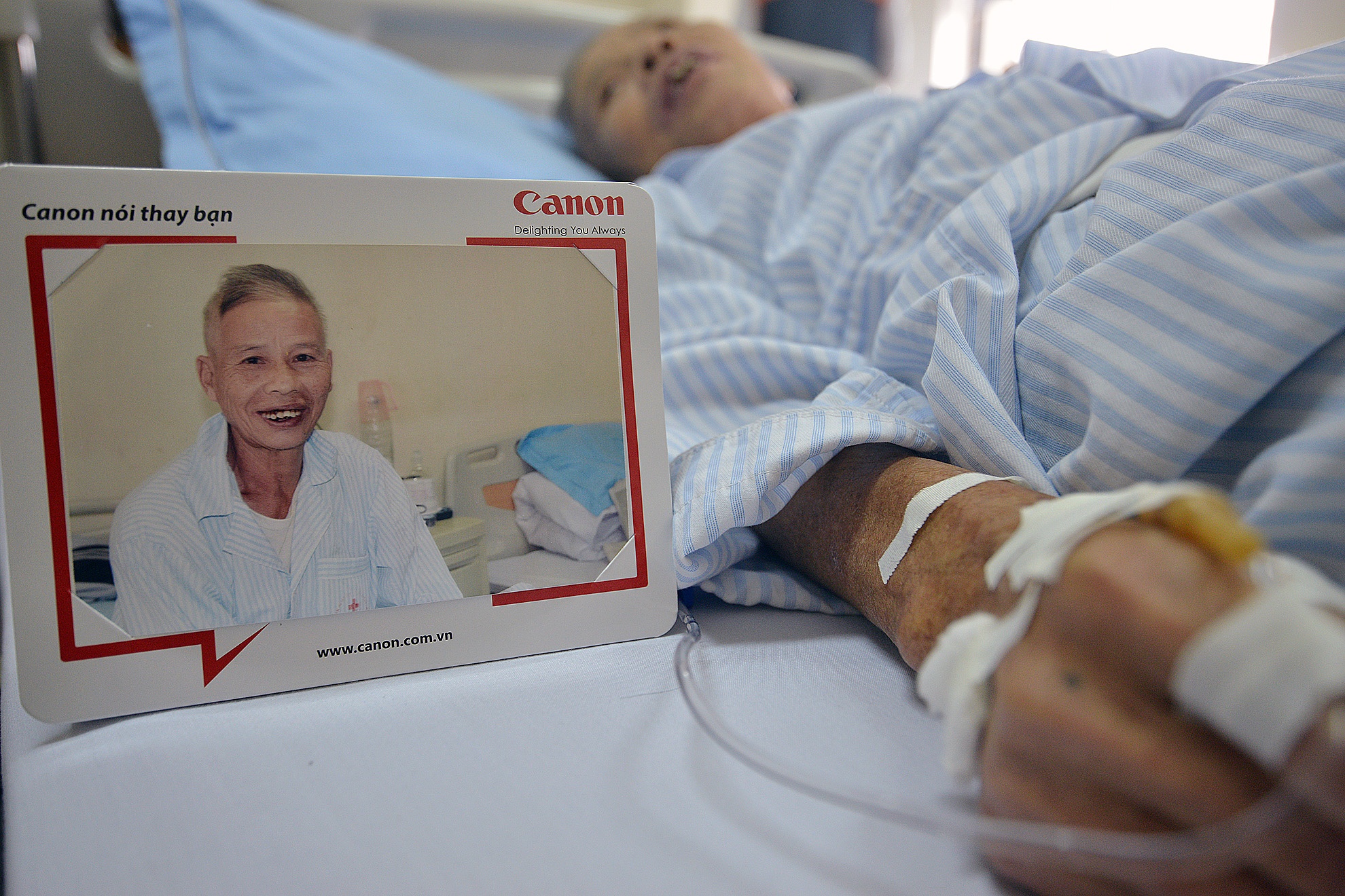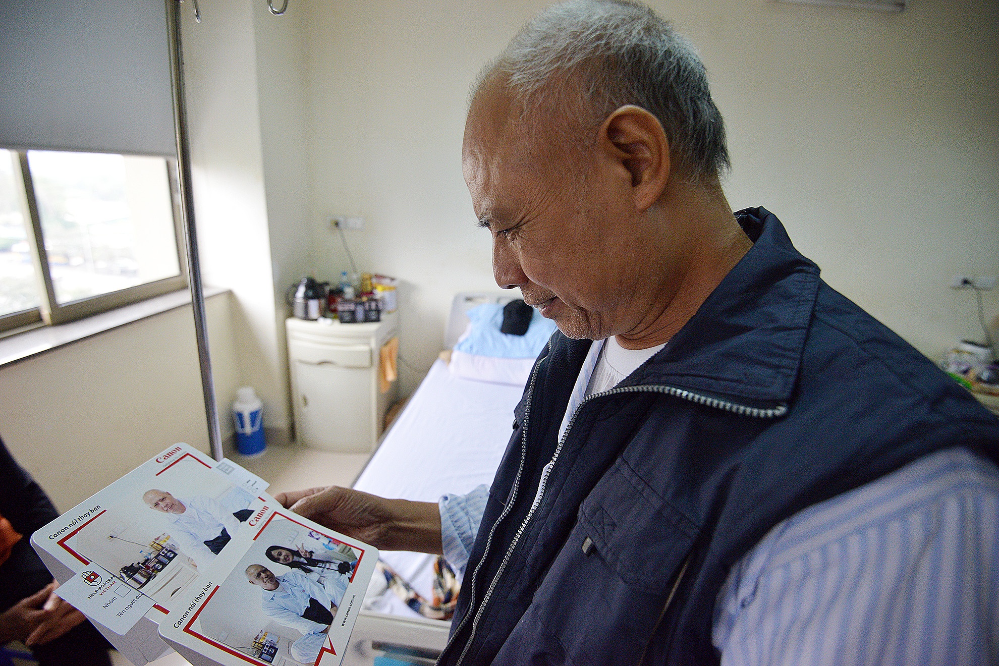 Ông Cao Xuân xem đi xem lại bức ảnh mà ban tổ chức gửi lại sau khi chụp. "Họ làm nhanh quá, ảnh lại đẹp nữa. Tôi sẽ đem về nhà sau khi điều trị xong", ông nói.