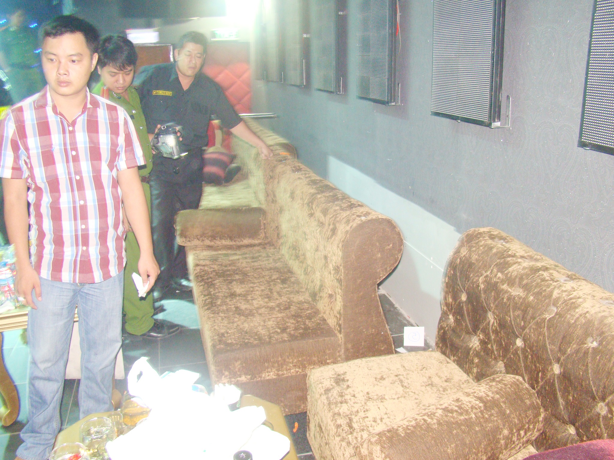 Lúc này, tại vũ trường có hơn 400 thanh niên, nam nữ đang lắc lư theo tiếng nhạc đinh tai, nhức óc. Ngay tại hiện trường, các cảnh sát sử dụng chó nghiệp vụ phát hiện 17 viên nén màu hồng, nghi là thuốc lắc và 1 bịch chất bột, nghi là ma túy tổng hợp. Sàng lọc nhanh, cơ quan công an phát hiện 13 người (11 nam và 2 nữ) dương tính với chất ma túy.