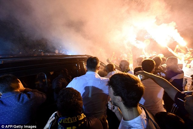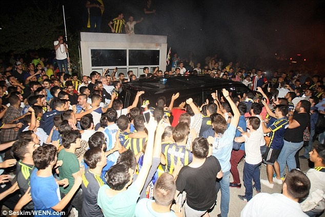 | Hàng trăm người hâm mộ Fenerbahce tới sân bay quốc tế Sabiha Gokcen ở Istanbul để chào đón ngôi sao người Bồ Đào Nha. |