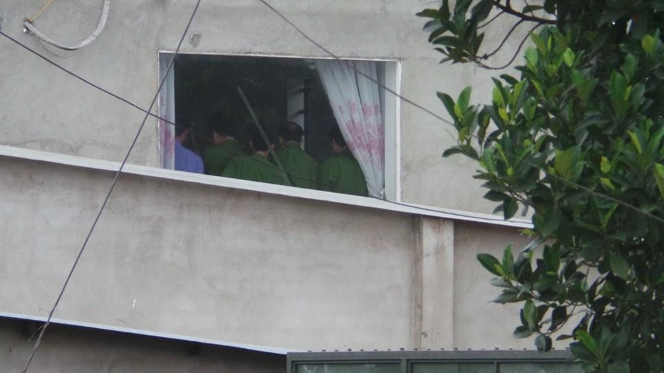 | Lực lượng công an đang thực nghiệm hiện trường trong nhà. |