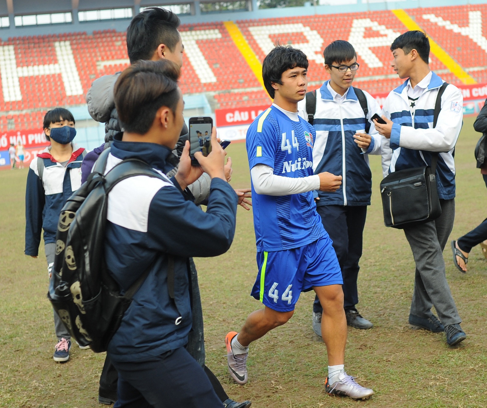 Công Phượng là ngôi sao nhận được nhiều sự chú ý nhất từ người hâm mộ Hải Phòng. Trong buổi tập làm quen mặt cỏ sân Lạch Tray, tiền đạo mang áo số 44 thường xuyên cười tươi, sẵn sàng cho trận đấu gặp chủ nhà đất Cảng.