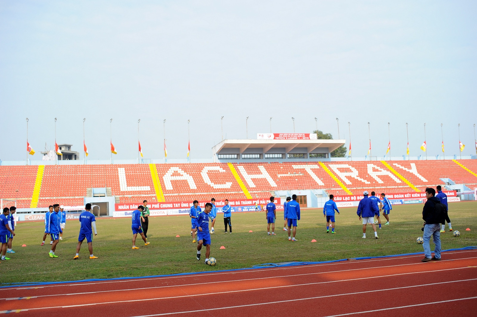 | Kết thúc buổi tập, HLV Graechen nhắc nhở các học trò thật chú ý với điều kiện mặt sân Lạch Tray khá xấu sẽ ảnh hưởng đến những pha xử lý bóng của cầu thủ cả 2 đội. |