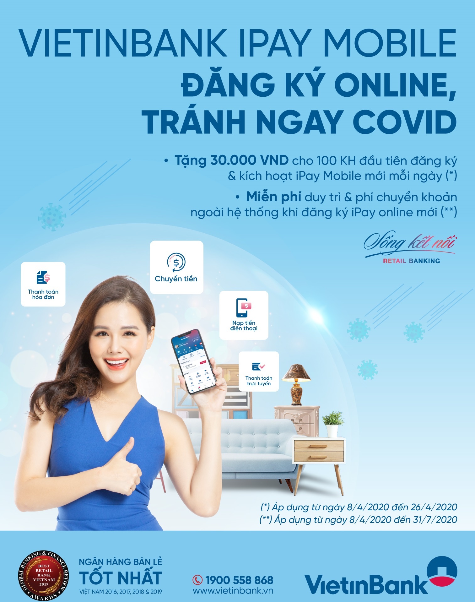 Thêm vào đó, để chung tay phòng, chống dịch Covid-19 được phát động bởi Mặt trận Tổ quốc Việt Nam, từ 1/4 đến hết 30/4, VietinBank miễn phí phí giao dịch chuyển khoản liên ngân hàng cho các khách hàng quyên góp, ủng hộ phòng chống dịch Covid-19 tới số tài khoản của Mặt trận Tổ quốc Việt Nam.