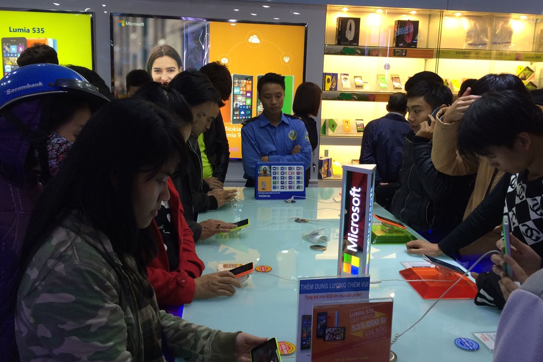 Mỗi cửa hàng chỉ bán ra 10 máy nhưng đã có đến vài trăm người tham gia bốc thăm để được sở hữu chiếc smartphone mới ra mắt của Microsoft.